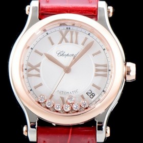 여성미가 넘치는 해피 스포츠 36mm 오토매틱 워치는 로즈 골드와 스테인레스 스틸 소재로 제작되었으며, 고도의 노하우와 세련된 가죽 스트랩이 돋보이는 완벽한 쇼파드 스타일의 워치입니다. 쇼파드의 시그니처인 무빙 다이아몬드는 생동감 넘치는 빛의 향연 속에서 발랄하게 춤을 추고 있으며, 현대적인 실버톤 다이얼은 로즈 골드 톤 로마 숫자 및 핸즈와 우아한 조화를 이룹니다. |