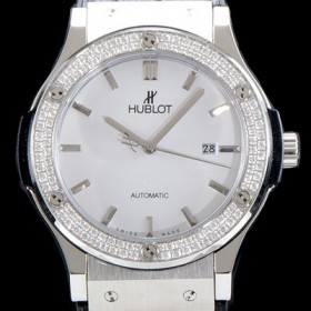 • 미러급 휴블렛 남성용 클레식 퓨전 582.NX.2610.RX.1204 "실버-다이아몬드 베젤" 화이트 다이얼 오토매틱 무브먼트 HUB0100 Ⅳ