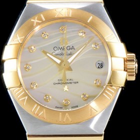 현재위치 : HOME 미러급 오메가 남성용 여성 컬렉션 컨스틀레이션 123.20.27.20.55.002 오메가 코-액시얼 27MM 로마 숫자가 인그레이빙된 베젤 18K 옐로골드 콤비 자개 다이얼 쿼츠 무브먼트 OMG4120 Ⅳ > 오메가