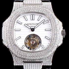 미러급 파텍필립 남성용 노틸러스 뚜르비옹 최상급쥬얼 다이아몬드 풀 세팅 케이스 화이트 텍스쳐 다이얼 아시안 투어빌론 탑재 PAT0104 Ⅳ