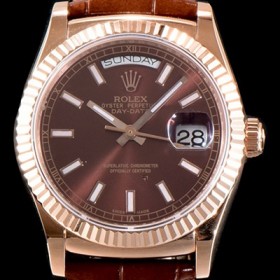 - 브라운 썬더스트 다이얼,18캐럿 골드 시각 표식,12시방향 요일창 - 3시방향 데이트창 퀵 체인지(Quick Change)기능 |