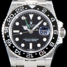 Rolex GMT-Master 2 Oyster, flat three-piece links Black Ceramic Bezel Black Dial Bracelet Automatic Movement
