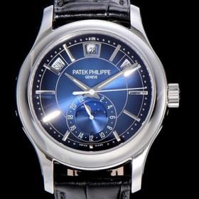 - 블루 다이얼,실버 스틱 인덱스 - 6시방향 문페이즈 디스플레이,퀵 체인지(Quick Change)기능 - 다이얼 10시.2시방향 각각 요일과 월 표시나란히 배치 - 12시방향 날짜창 , 퀵 체인지(Quick Change)기능 |