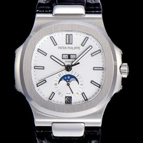 미러급 파텍필립 남성용 노틸러스 5726/1A-014 오토매틱 Cal.324 타입 40미리 문페이즈 가죽줄/밴드 화이트다이얼 PAT75447 Ⅳ