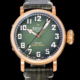 미러급 제니스 남성용 파일럿 타입 20 애드벤쳐 브론져제질 오토매틱 9015무브 45미리 가죽시계 그린다이얼 ZEN77591 Ⅳ