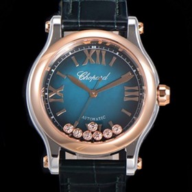 미러급 쇼파드 여성용 해피 스포츠 오토매틱 ETA2892-2 타입 36mm 래이디스/금장시계 18K로즈골드 가죽줄 블루다이얼 cho74208 Ⅳ