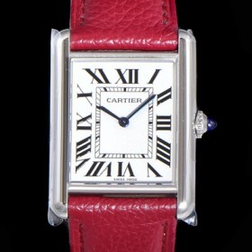 미러급 까르띠에 여성용 탱크 머스트 WSTA0041 로마 인덱스 33.7mm 화이트 다이얼 가죽줄 쿼츠 무브먼트 CAR08320 Ⅳ