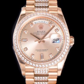 Rolex Day-Date Automatic Cal.3235 TYPE 36mm Mens 18K All Rose Gold Diamond Blue Dial