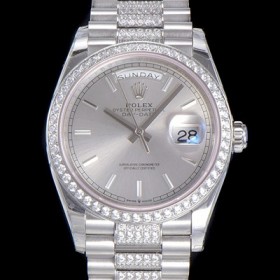 Rolex Day-Date Automatic Cal.3235 TYPE 36mm Mens Diamond Silver Dial