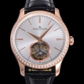 미러급 예거르꿀트르 남성용 마스터 그랜드 트레디션 1662451 오토매틱 투어빌론 798타입 42mm 18K 로즈골드 보석다이아드베젤 가죽시계 실버다이얼 jag03476 Ⅳ