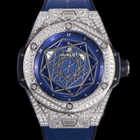 미러급 휴블렛 남성용 빅뱅 쌍 블루 티타늄 오토매틱 HUB1213타입 45미리 다이아몬드/보석 케이스 가죽/우레탄 믹스밴드 블루다이얼 hub98356 Ⅳ