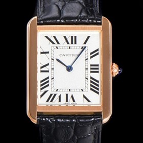 미러급 까르띠에 남성용 신상 탱크 WSTA0028 화이트 다이얼 34.8mm 로즈골드 커플용 악어가죽 쿼츠 무브먼트 CAR01580 Ⅳ
