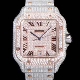 • 미러급 까르띠에 남성용 산토스 쥬얼 다이아몬드 셋팅 베젤 40mm 큐빅/보석 다이얼 오토매틱 무브먼트 CAR45686 Ⅳ