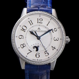 • 미러급 예거 르꿀르뜨 여성용 랑데뷰 나잇&데이 문페이즈 오토매틱 898A 타입 무브 34mm 보석 배젤 가죽줄  화이트다이얼 jag1521 Ⅳ