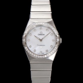 미러급 오메가 여성용 컨스틀레이션 131.15.28.60.55.001 다이아몬드 세팅 베젤 28mm 쿼츠 무브먼트 화이트 자개 다이얼 omg0145 Ⅳ