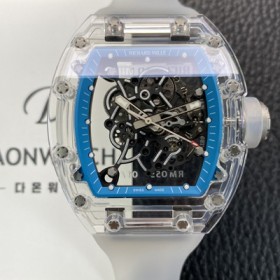 미러급 리차드밀레 남성용 RM055 트랜스파랜트 50mm 미네랄 크리스탈 기계식 수동형 무브먼트 블루 스켈레톤 다이얼 ric0328 Ⅳ