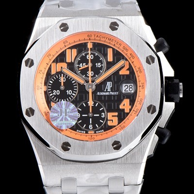- 블랙 3D와플 다이얼,오렌지 아라비안 인덱스 - 3시방향 날짜 표시, 퀵 체인지기능(날짜가 00시에 정확히 바뀜) ,2.5배율 확대경 - 크로노그래프(chronograph) 30분계, 12시간계, 영구초침(Small Seconds) - 업그레이드된 야광기능(핸즈 및 인덱스) |