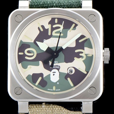 • 미러급 벨엔로즈 남성용 인스트루먼트 BR 03-92 "에이프 투게더 스트롱" 스틸-45mm 카모 다이얼 오토매틱 무브먼트 BEL4254 Ⅳ