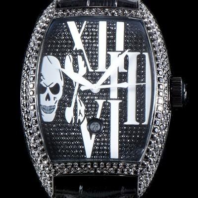 - 다이아몬드 풀 셋팅 다이얼(해골무늬) - 6시방향 날짜창 , 퀵 체인지(Quick Change)기능 - 전체 다이아 반지와 동일한 1:1수공맞물림 형식 일본산 최고급주얼셋팅 |
