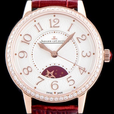 • 미러급 예거 르꿀르뜨 여성용 랑데뷰 나잇&데이 문페이즈 오토매틱 898A 타입 무브 34mm 금장시계 보석 배젤 가죽줄 화이트다이얼 jag1151 Ⅳ