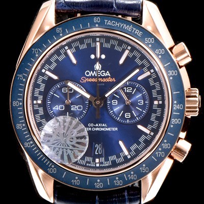 • 미러급 오메가 남성용 스피드마스터 329.53.44.51.03.001 18K 로즈골드 레이싱 코-액시얼 마스터 크로노미터 타키미터 크로노그래프 블루 다이얼 일본 수입산 쿼츠 무브먼트 OMG05041 Ⅳ