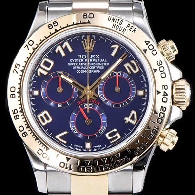- 블루 다이얼,아라비안 인덱스 - 크로노그래프(Chronograph)- 30분계, 12시간계, 영구초침(Small Seconds) - 다이얼 6시방향 로렉스 레이저 각인 업그레이드 |