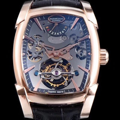 - 그레이 스켈레톤 다이얼,로즈골드 스틱 인덱스 - 6시방향 플라잉 뚜르비옹(스켈레톤)디스플레이 |