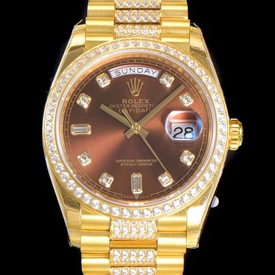 Rolex Day-Date Automatic Cal.3235 TYPE 36mm Mens 18K All Yellow Gold Diamond Red Dial