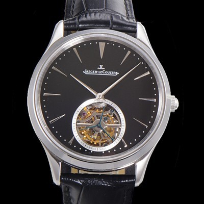 미러급 예거 르꿀르뜨 남성용 마스터 울트라 씬 투어빌론 43mm 가죽줄 블랙다이얼 jag9125 Ⅳ