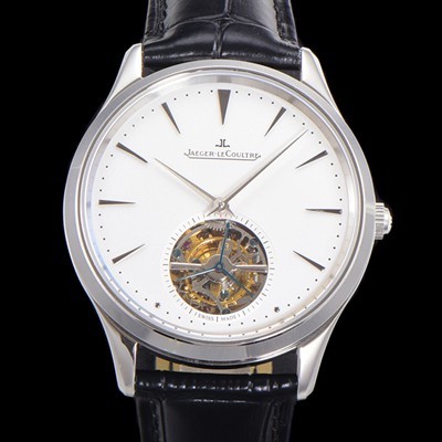 미러급 예거 르꿀르뜨 남성용 마스터 울트라 씬 투어빌론 43mm 가죽줄 화이트다이얼 jag3991 Ⅳ
