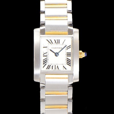 Cartier Women's Tank "Française Watch!!" S model, yellow gold steel silver finish grained dial Swiss quartz movement