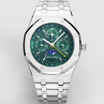 - 그린 3D와플 다이얼,실버 스틱 인덱스 - 6시 방향 문페이즈 - 업그레이드된 야광기능(핸즈 및 인덱스)