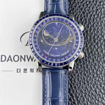 • 미러급 파텍필립 남성용 그랜드 컴플리케이션 6104P 문페이즈 43mm 오토매틱 Cal.240 타입 블루 다이얼 pat2274 Ⅳ (+0원)