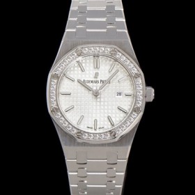 Audemars Piguet Ladies Royal Oak Bracelet 33mm Quartz Movement White Waffle Dial