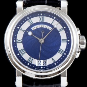 제품특징 마린 손목시계, 스틸, 자동 무브먼트, 실버도금 엔진 터닝 다이얼, 18캐럿 골드, 브레게 로마 숫자 챕터 링과 형광 소재 분 마커, 6시 자리에 위치한 대형 날짜 윈도우, 블루 컬러 스틸의 오픈-팁 형광 브레게 핸즈, 사파이어 크리스탈 엔진 터닝 케이스백, 65시간 파워리저브, 100미터 방수.