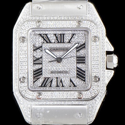 • 미러급 까르띠에 남성용 산토스 100 베스트 에디션 W20073X8 미듐 모델 화이트 골드 풀다이아몬드 셋팅 오토매틱 무브먼트 CAR4015 Ⅳ