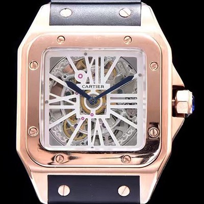 미러급 까르띠에 남성용 신상출시!!산토스 뒤몽 컬렉션 WHSA0010 18k 로즈골드 스켈레톤 다이얼 오토매틱 무브먼트 CAR0113 Ⅳ