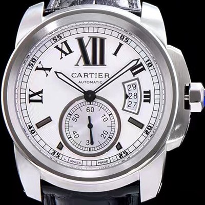 Cartier Calibre de Cartier SS JF White Dial on Black Leather Strap Automatic