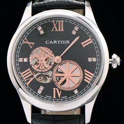• 미러급 까르띠에 남성용 롱드더 까르띠에 서브 세컨즈 물결무늬 실버 다이얼 블랙 로마 인덱스 스위스 ETA 2824-A2오토매틱 무브먼 CAR0335 Ⅳ