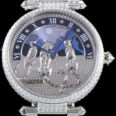 태양과 달이 차례로 시각을 표시하고, 데이 앤 나이트 무브먼트 주위의 세 마리의 팬더는 태양과 달이 나타나는 광경을 감상하고 있습니다. 까르띠에의 그랜드 컴플리케이션 중 한 개의 컴플리케이션과 까르띠에의 상징적인 동물인 팬더의 아우라를 예술적으로 결합한 모델입니다.