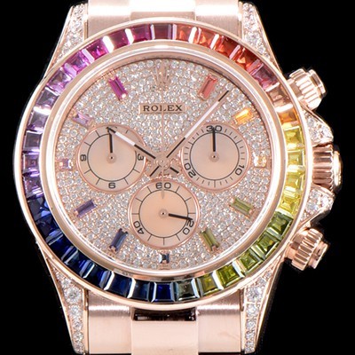 • 미러급 로렉스 남성용 신형 데이토나!! 코스모그래프 "레인보우" 무지개 컬러 바게크 컷 사파이어 36개 세팅 베젤 다이아몬드-핑크자게 다이얼 오이스터 브레이슬릿 7750B-2 오토매틱 무브먼트 ROL0510 Ⅳ (+0원)
