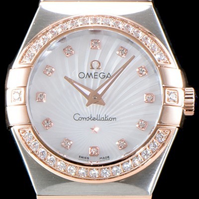• 미러급 오메가 여성 컬렉션 컨스틀레이션 123.25.27.60.55.002 오메가 코-액시얼 27MM 다이아몬드 세팅 베젤 화이트 자개 다이얼 18K 로즈골드 콤비 쿼츠 무브먼트 OMG0120 Ⅳ