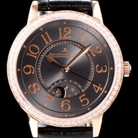 미러급 예거르꿀르뜨 남성용 랑데부 나잇&데이 3442150 레이디 워치 18K 로즈골드 최상급 다이아몬드 세팅 베젤 문페이즈 그레이 다이얼 오토매틱 무브먼트 JAG0423 Ⅳ