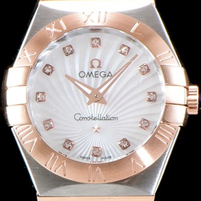 • 미러급 오메가 남성용 여성 컬렉션 컨스틀레이션 123.20.27.20.55.002 오메가 코-액시얼 27MM 로마 숫자가 인그레이빙된 베젤 18K 로즈골드 콤비 화이트 자개 다이얼 쿼츠 무브먼트 OMG4120 Ⅳ