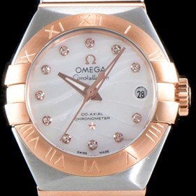 Omega Constellation Co-Axial White mother-of-pearl Dial Engraved Roman numerals bezel 18K RoseGold Cal. 4061 Quartz Movement