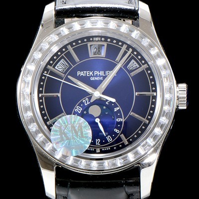 - 엘레강스 선버스트(Sunburst) 블루 다이얼,실버 스틱 인덱스 - 6시방향 문페이즈 디스플레이,퀵 체인지(Quick Change)기능 - 다이얼 10시.2시방향 각각 요일과 월 표시나란히 배치 - 12시방향 날짜창 , 퀵 체인지(Quick Change)기능 |
