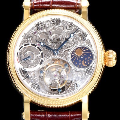 • 미러급 파텍필립 남성용 그렌드 컴플리케이션 18k 옐로골드 문페이즈 세귤 리얼 투어빌론 최상급 쥬얼 다이아몬드 베젤 스켈레톤 다이얼 PAT0402 Ⅳ