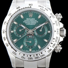 Rolex Cosmograph Daytona TOP Grade Quality Oyster 18K White Gold Chronograph Green Sun Dust Dial Automatic Movement