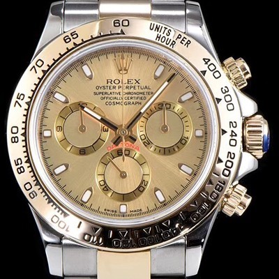 - 1:1한정제작 스페셜오더로 제작된 로렉스 데이토나 18K옐루골드 포금제품 - 수정형 하이퀄리티 타입 7750-B2 오토메틱 자동형 무브적용 - 고급스러운 18K 옐로우골드 포금처리 - 무반사 코팅된 사파이어 크리스탈 글라스 - 피부 트러블이 없는 316F 써지컬 스틸소재 - 크로노그래프 30분계, 12시간계 , 영구초침 정상작동 - 빛에따라 무늬가 보여지는 그린 선레이 다이얼 - 2시,4시방향의 버튼 UnLock 기능지원