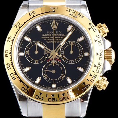 - 블랙 다이얼,옐로골드 서브 다이얼 - 야광 인덱스,야광 핸즈 |